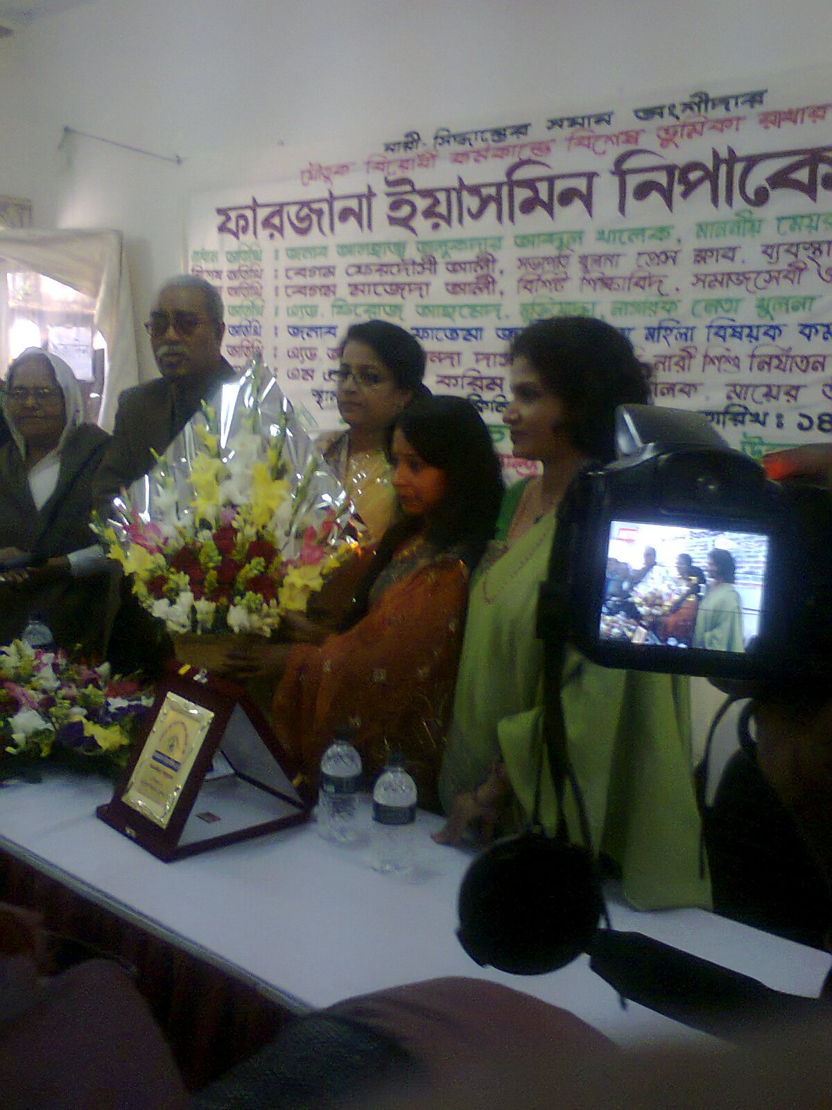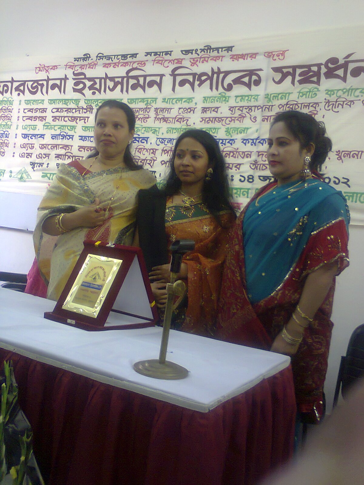 ওয়ার্ল্ড মুসলিম কংগ্রেসের প্রযোজনায় ১৪ই জানুয়ারী ২০১২ তারিখে যৌতুকের বিরুদ্ধে রুখে দাঁড়ানোর জন্য ফারজানা ইয়াসমিন নিপা ও তার বাবা-মায়ের সম্মানে বেসরকারী সংগঠন ‘‘মায়ের আঁচল’’ এক সম্মাননা অনুষ্ঠানের আয়োজন করেন। যৌতুকের বিরুদ্ধে আইন থাকলেও এই ভয়ংকর কুপ্রথায় বাংলাদেশে স্বামীপক্ষ বহু নারীকে নির্মমভাবে অপমান, নির্যাতন, প্রহার, আগুনে দগ্ধ এমনকি খুন পর্যন্ত করে।